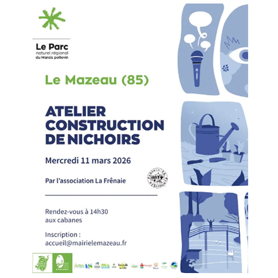 Dans le cadre des Atlas de la Biodiversité Communale (ABC) du Marais Poitevin, une animation est organisée le mercredi 11 mars 2026 à partir de 14h30 portant sur la construction de nichoirs.